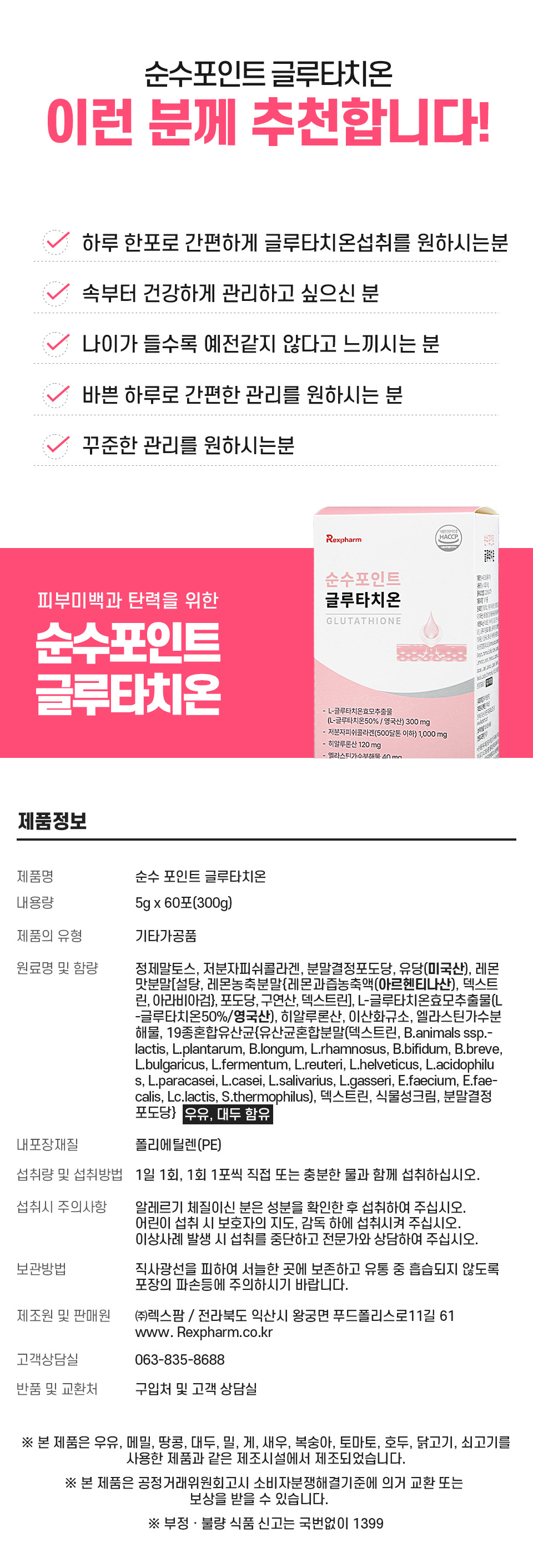 순수포인트 글루타치온 (5g * 30포) * 2 / 총 60포 2달분