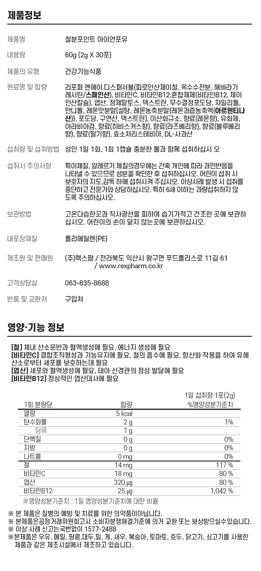 철분포인트 아이언포유 (2g * 30포) * 2 / 총 60포 2달분 / 10포단위 판매가능