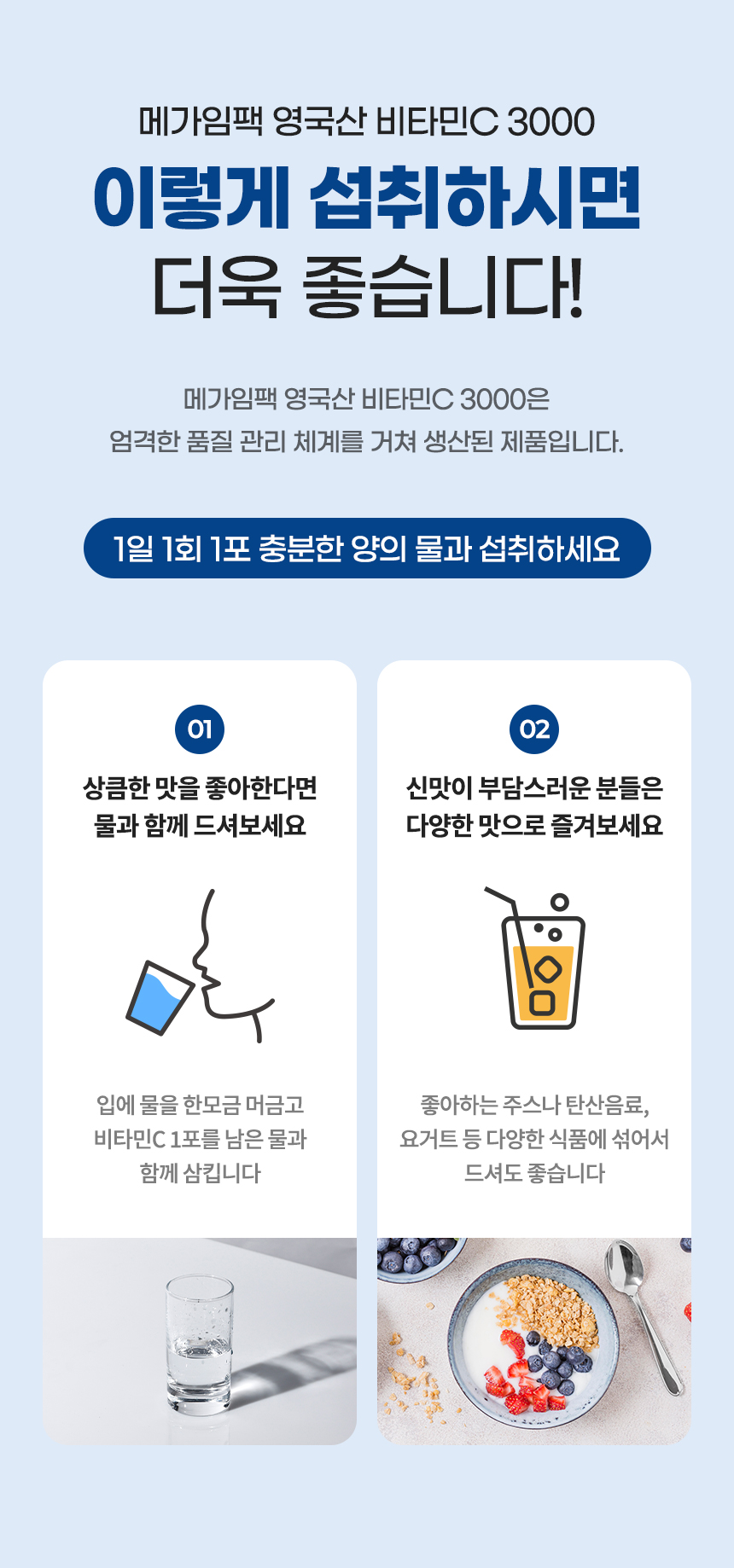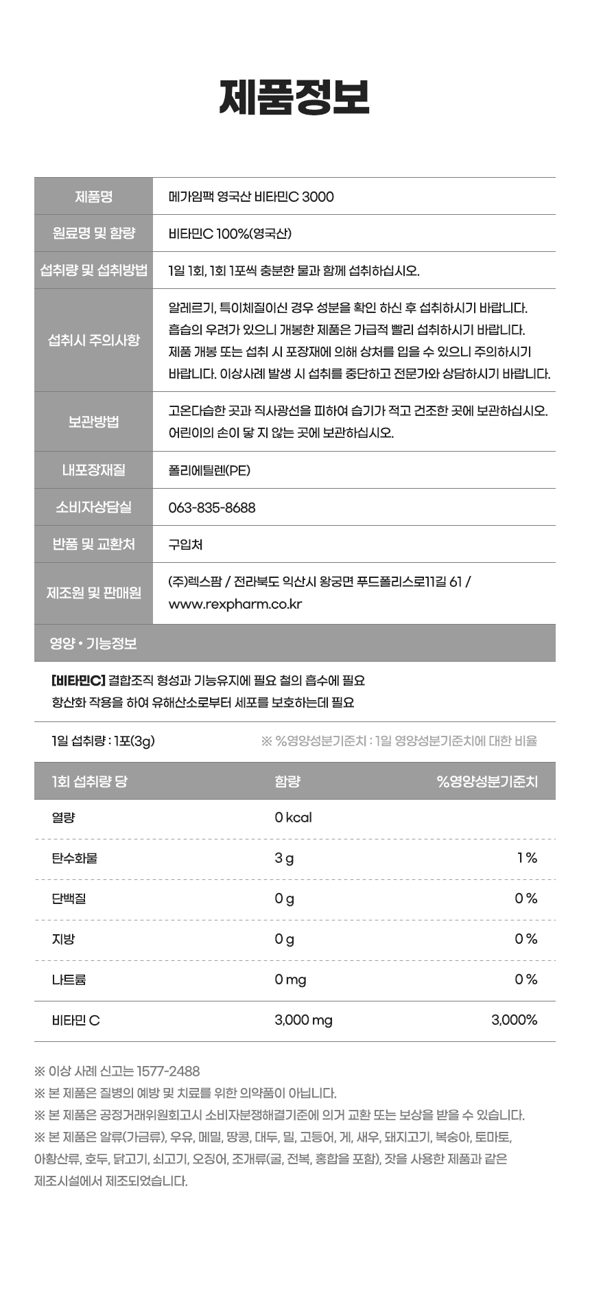메가임팩 영국산 비타민C 3000 / 3g*100포 (3개월분)