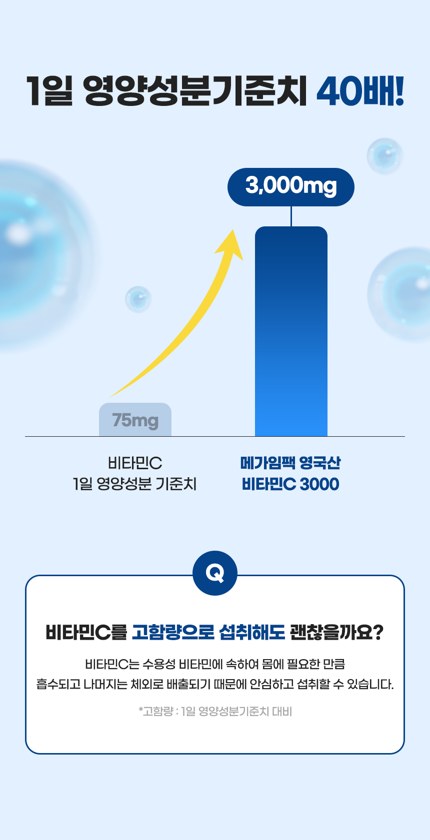 물에 타서먹는 메가도스요법용 비타민C 3000mg(영국산원료) / 한포
